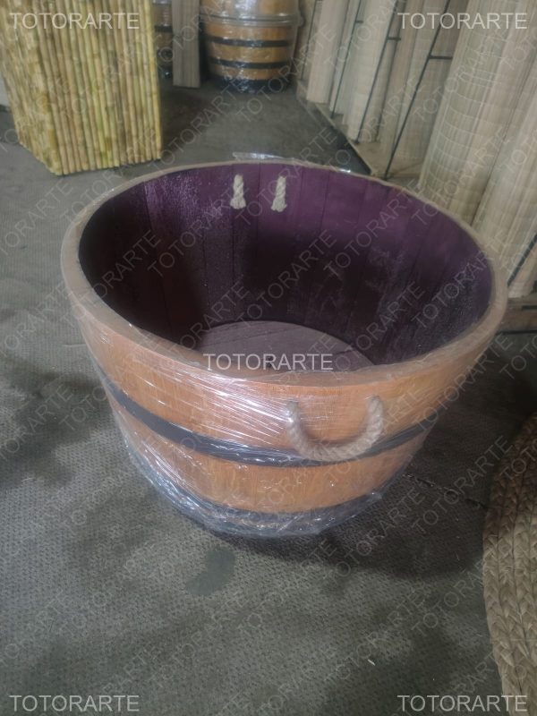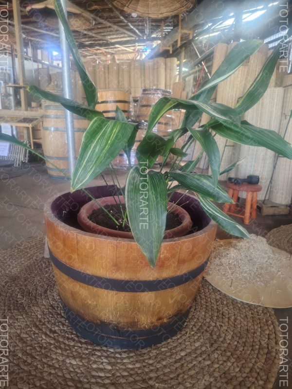 Barril Cortado para Macetero: La versión más versátil, perfecta para dar vida a tus plantas con un toque campestre. Su gran capacidad y solidez lo convierten en el hogar ideal para tus especies favoritas.